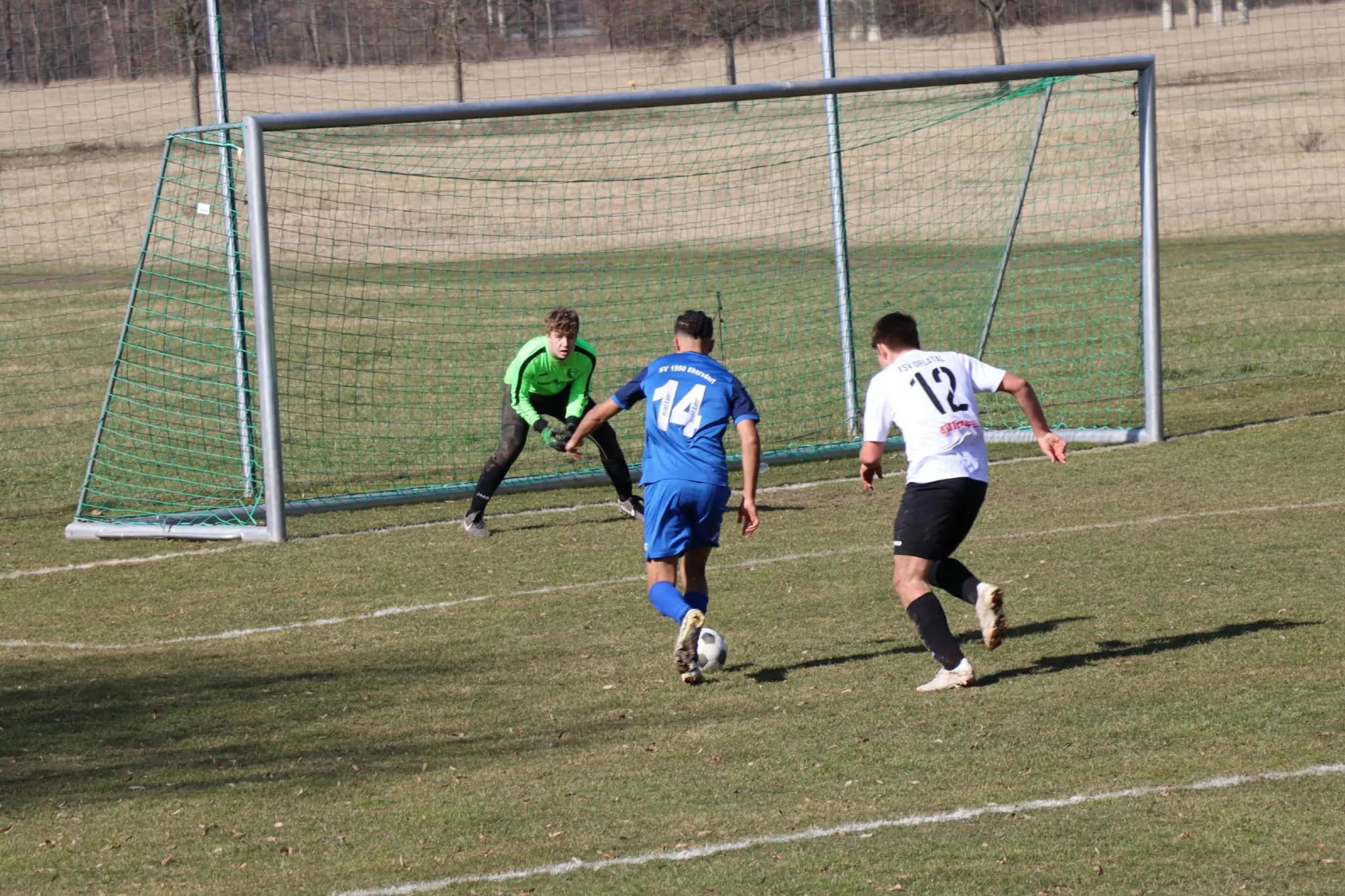 Im ersten Pflichtspiel des Jahres fuhren die Ebersdorfer zum schweren Auswärtsspiel gegen den FSV Orlatal. Beide Teams hielten sich nicht mit viel Vorgeplänkel auf, sondern spielten offensiv nach vorne. Die erste gute Gelegenheit bot sich den Gästen in der 3. Minute, wurde aber vergeben. Besser machte es der FSV, der mit dem ersten Torabschluss in der 4. Minute das 1:0 erzielte, nachdem ein Pass von rechts in den Strafraum am langen Pfosten verwandelt werden konnte. In der Folge war der SVE optisch leicht im Vorteil, aber Chancen boten sich auf beiden Seiten für einen Treffer, so auch eine Großchance der Ebersdorfer in der 24. Minute, die vom FVS-Schlussmann entschärft wurde. In einem guten Spiel beider Mannschaften fiel bis zur Pause kein weiterer Treffer.