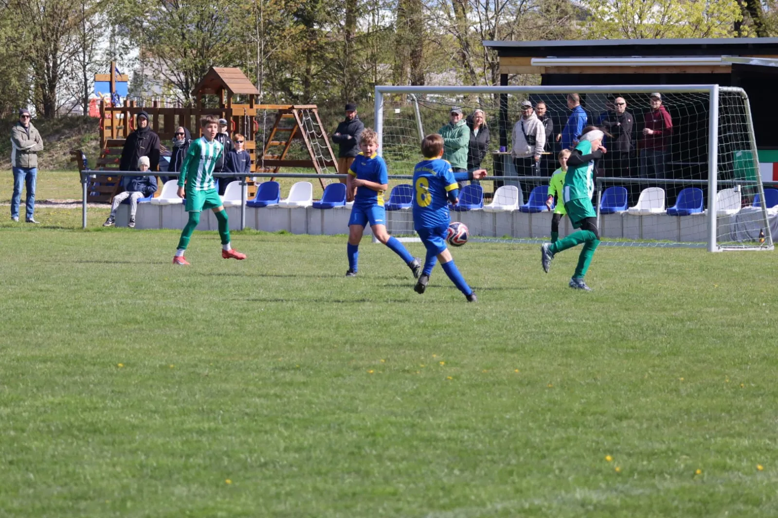 Die Gäste dominierten die Anfangsphase und drängten auf das Ebersdorfer Gehäuse. Bei den ersten Versuchen scheiterten sie aber noch an der Torlatte oder am SVE- Keeper Tim. Doch nach 4 Minuten ging der Ball durch Bocklisch ins Tor.