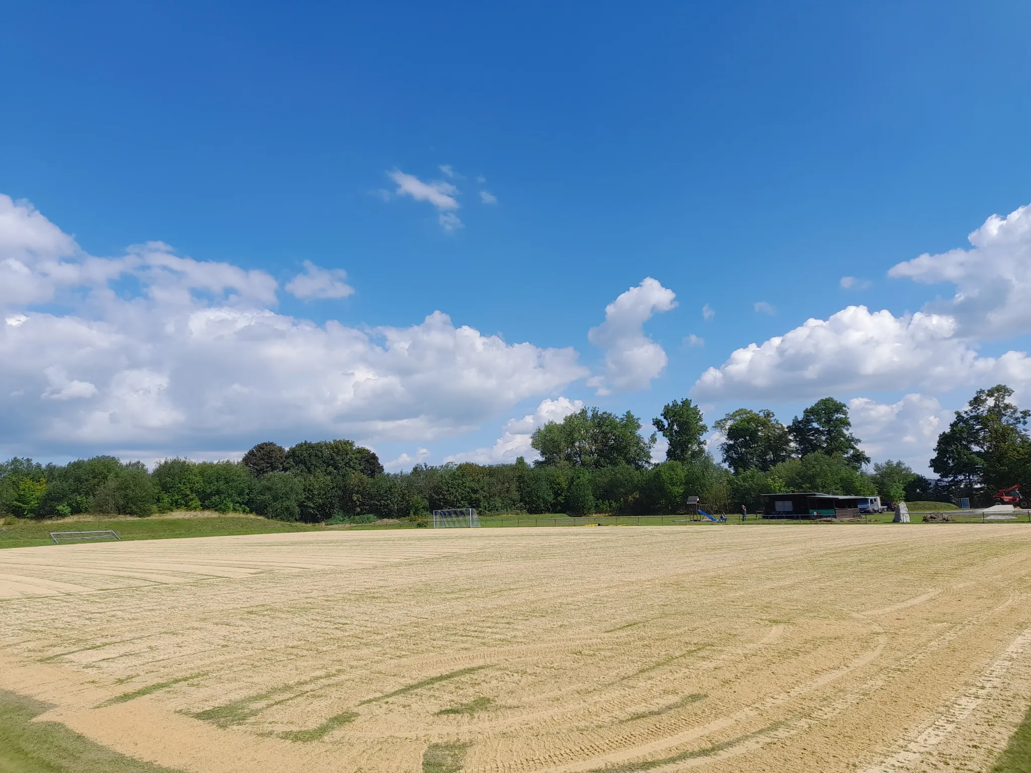In einer aufwendigen Aktion, wurde unser Sportplatz gespritzt, vertikutiert, gedüngt, gesäht, besandet, aerifiziert und der Sand eingeschleppt.Â